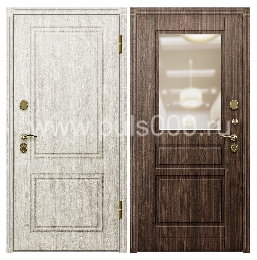 Входная дверь с зеркальными вставками и утеплителем в квартиру MDF-67